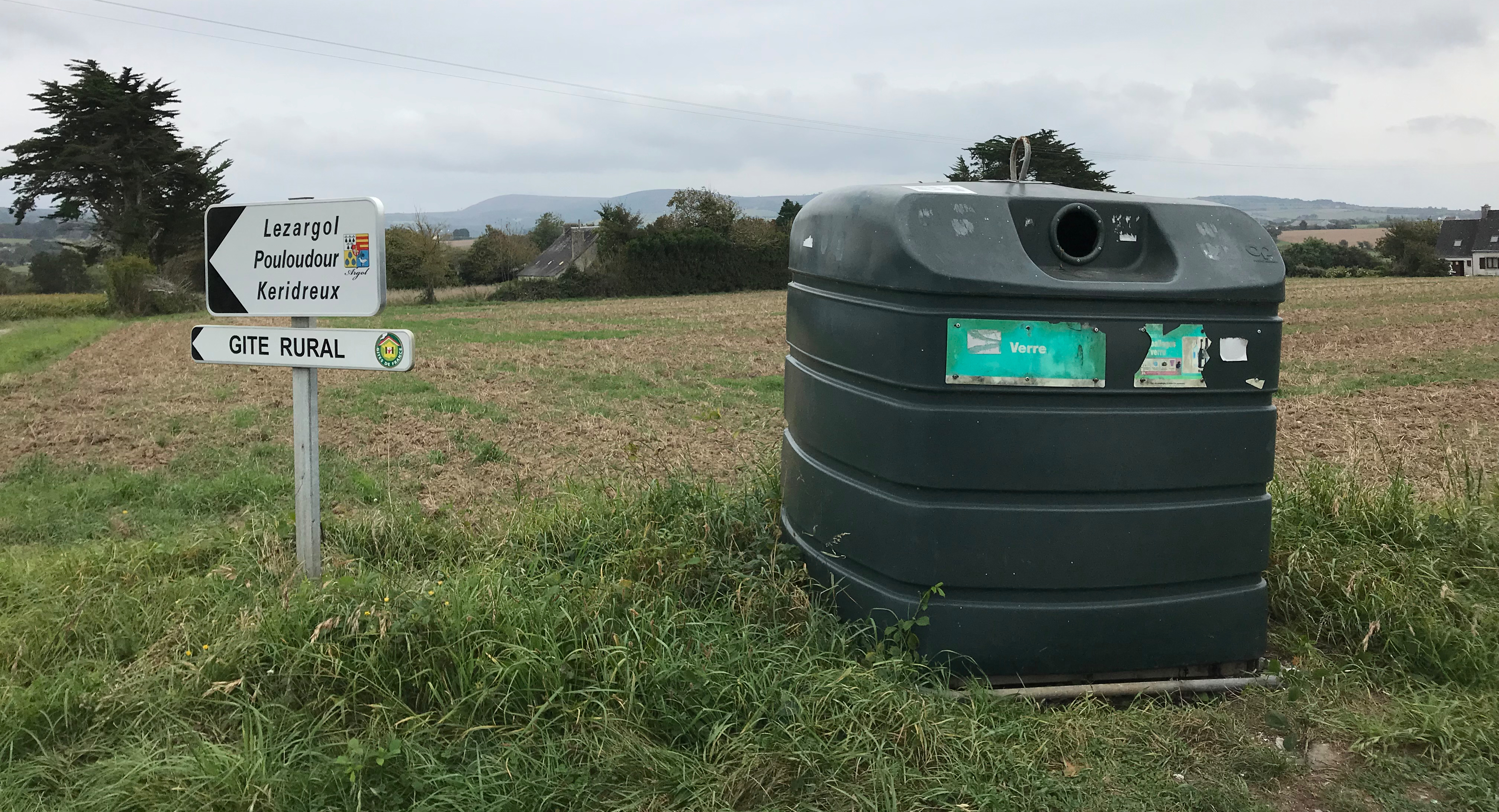 Le verre va dans un autre conteneur à part, qu’on doit trouver le long de la rue. Certes, ils sont grands (toutes ces bouteilles de vin !), donc ils sont faciles à repérer.