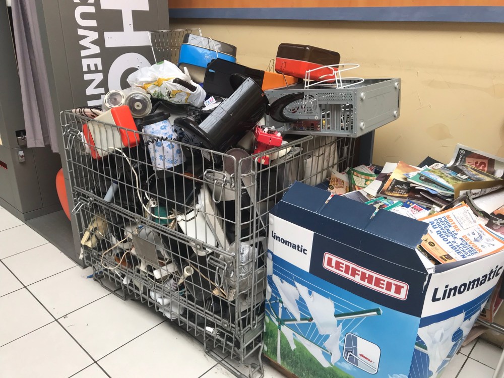 Le supermarché du coin a des conteneurs pour recycler toutes sortes de choses que nous jetons chez nous.