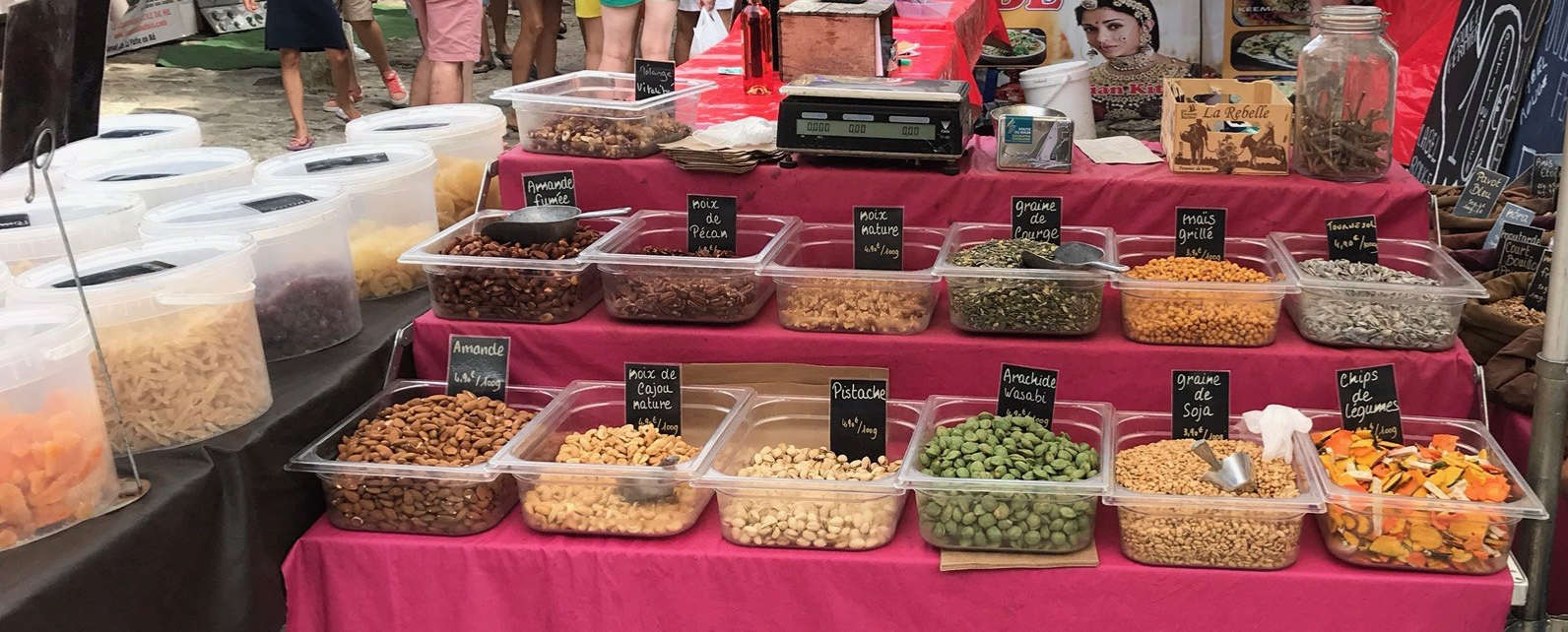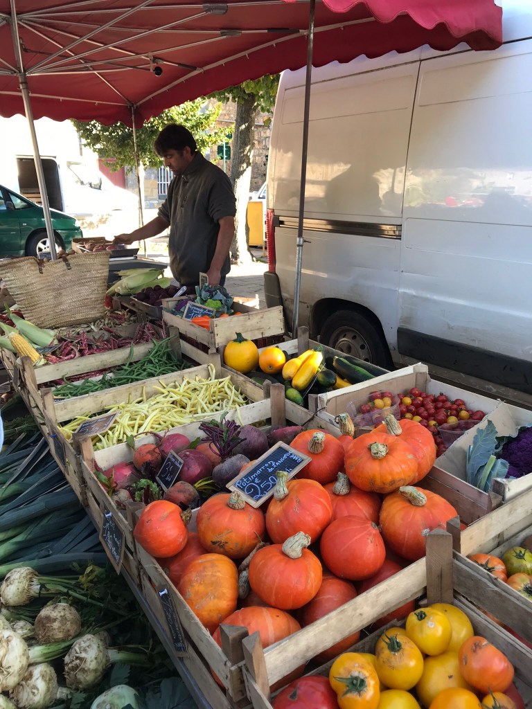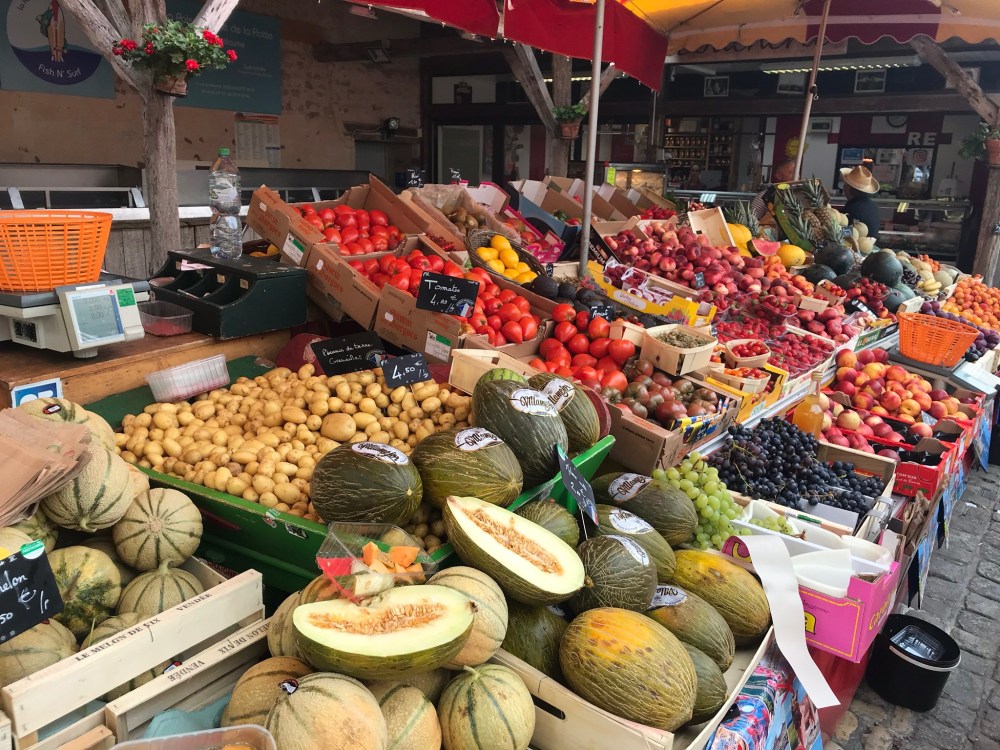 Un des plus grands plaisirs en faisant des courses en France est, quand on va au marché, d’avoir le marchand qui vous demande « Allez-vous le manger aujourd’hui ou demain ? » Qu’importe la réponse, vous recevrez un melon, une tomate, ou une pêche parfaitement mûre. Et si votre réponse est « aujourd’hui », il peut vous donner une tomate gratuite avec une tache qu’on peut facilement retirer, comme ça s’est passé pour nous plus tôt cette semaine. Si les marchés sont grands, comme dans La Flotte sur l’Île de Ré, ou plus petit comme celui de Crozon, c’est toujours un plaisir de voir tous les produits frais de la région et de faire la connaissance des producteurs de nos aliments.