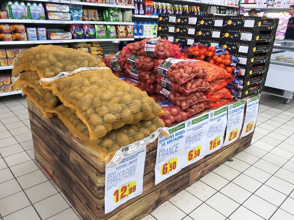 Par contre, on peut acheter 20 kilos de pommes de terre pour 12,99€. Hier nous avons vu un homme qui vend des sacs comme ceux-ci de son camion. Qu’est-ce qu’on fait avec tant de pommes de terre en même temps ? les gens ont-ils tous une cave à légumes ? Ou peut-être la friteuse dans le gîte nous donne un indice…c’est la seule région que nous avons visité où une friteuse était considéré essentielle dans un gîte.